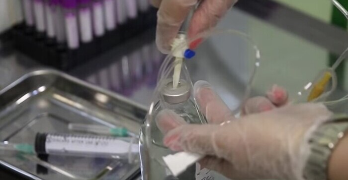 Врач готовит капельницу к постановке